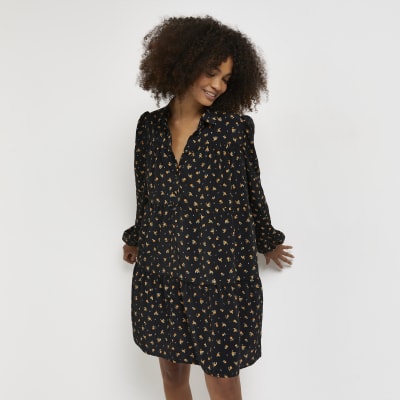 Long Sleeve Dresses. Whatever the occasion make it an elegant affair with this tie waist long sleeve midi shirt dress. Featuring a black material with long puff sleeves and a shirt style.