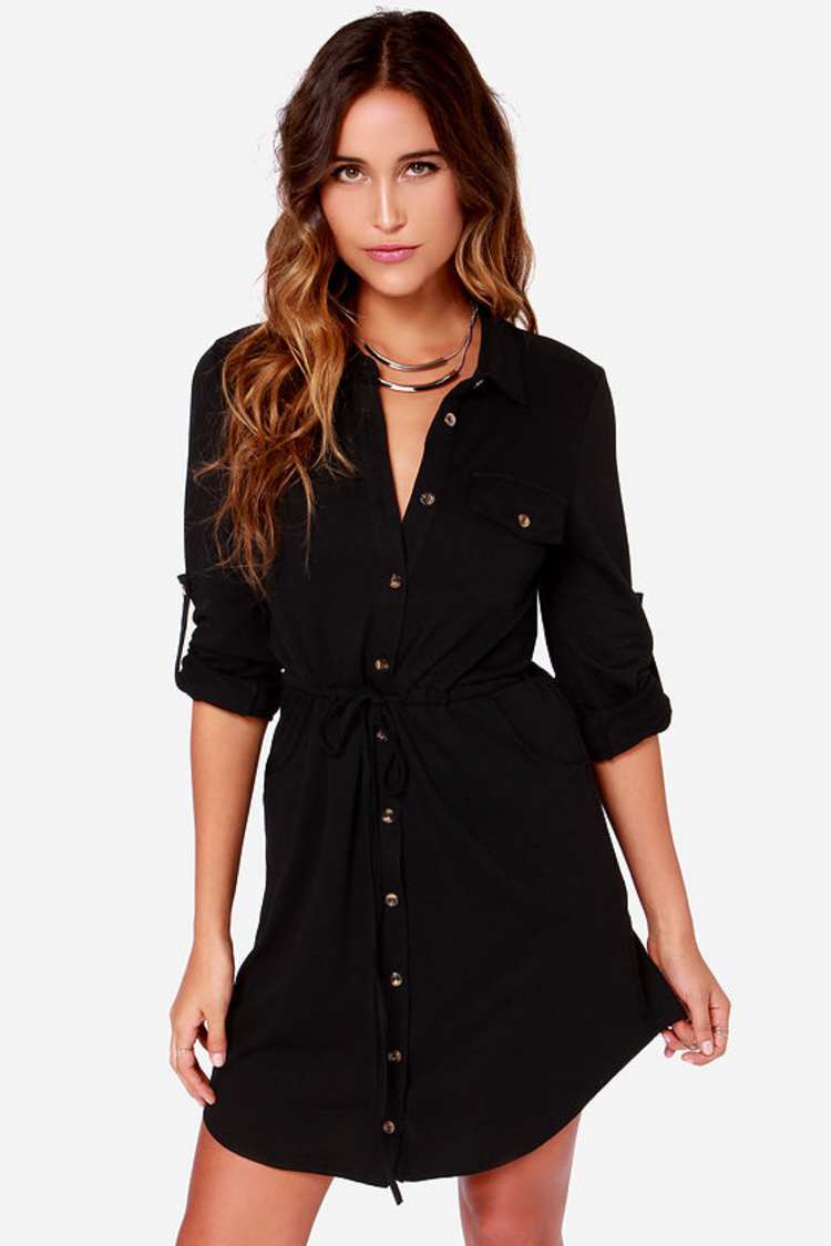 Little Black Dress Lbd Long Sleeve Dress Shirt Dress 44 00 Lulus