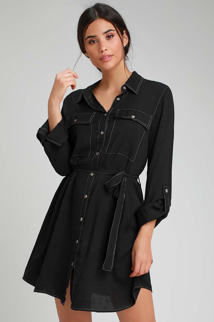 Chic Black Dress Shirt Dress Long Sleeve Dress Dress Lulus